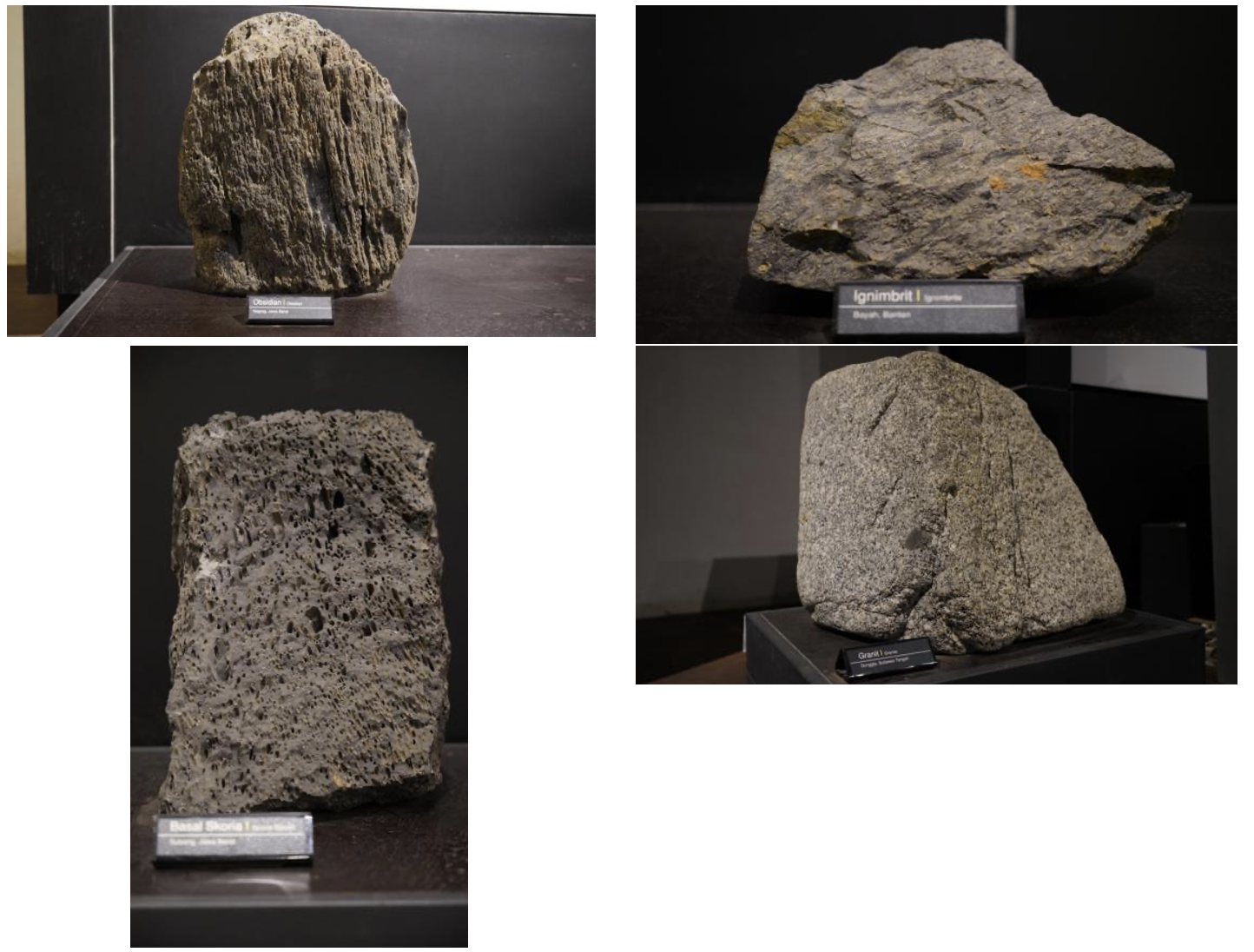 Gambar: Beberapa koleksi batuan beku di ruang pamer Museum Geologi (sumber: internal)