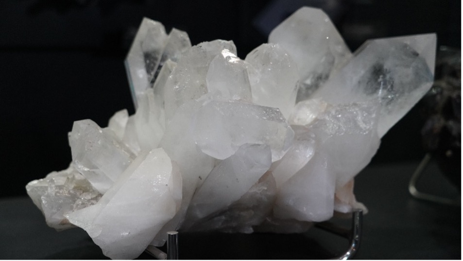 Gambar 3. Salah satu koleksi mineral kuarsa yang dipamerkan di Ruang Geologi Indonesia, yang memiliki sistem kristal heksagonal (terdiri dari enam bagian).