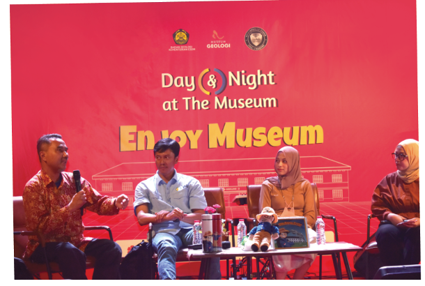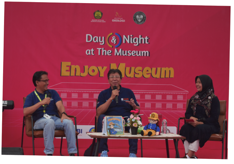 Pada kegiatan Day and Night at The Museum (DNTM) yang bertema “Enjoy museum”, Sabtu 28 Januari 2023, Museum Geologi menyuguhkan suasana berbeda dengan Film Screening (nonton bareng) dan diskusi “Dunia Geologi di Ujung Lensa Sineas”. Film yang ditayangkan yakni dua film dokumenter yang bertajuk “Living on The Fault” karya Mahasiswa Program Studi Film dan Televisi-FPSD UPI dan “Manakarra yang Mendunia” produksi Museum Geologi. Setelah penayangan film, kegiatan dilanjutkan pada sesi diskusi bersama narasumber Dr. Ir. Dicky Muslim, M.Sc. selaku dosen Fakultas Teknik Geologi-UNPAD, Dr.Eng. Mirzam Abdurrachman, S.T., M.T selaku Ketua Program Studi Magister dan Doktor Teknik Geologi ITB, dan Vania Qanita Damayanti selaku Sutradara “Living on The Fault “mahasiswa Prodi FTV-FPSD UPI.