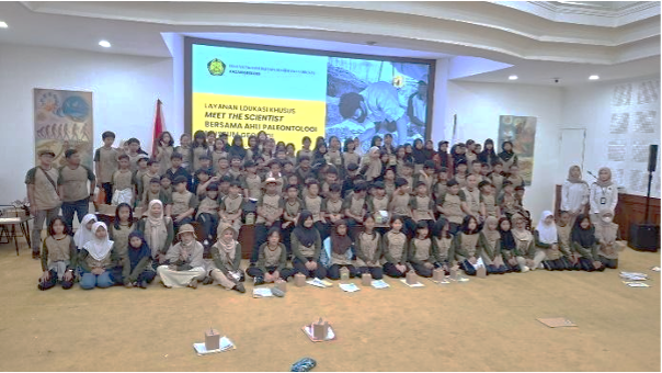 Bandung, 15 Oktober 2025 — Museum Geologi Bandung kembali menyelenggarakan kegiatan Layanan Edukasi Khusus (LEK) bertajuk “Meet The Scientist Bersama Ahli Paleontologi Museum Geologi” pada Senin (6/10) di Auditorium Museum Geologi. Kegiatan yang diinisiasi oleh Planet Sains ini menghadirkan suasana belajar yang seru dan interaktif, diikuti oleh 122 siswa dan 14 guru dari SD Laboratorium UPI Bumi Siliwangi Bandung. Acara kali ini menghadirkan Kak Halmi Insani, S.T., MIQP. seorang ahli paleontologi dari Museum Geologi, yang dengan penuh semangat berbagi pengetahuan tentang dunia kepurbakalaan dan fosil.
