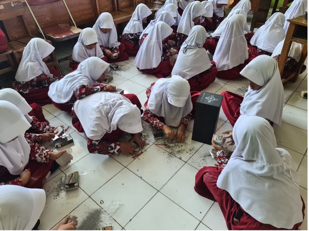 Semangat yang ditunjukan para pelajar untuk melakukan simulasi digging fosil