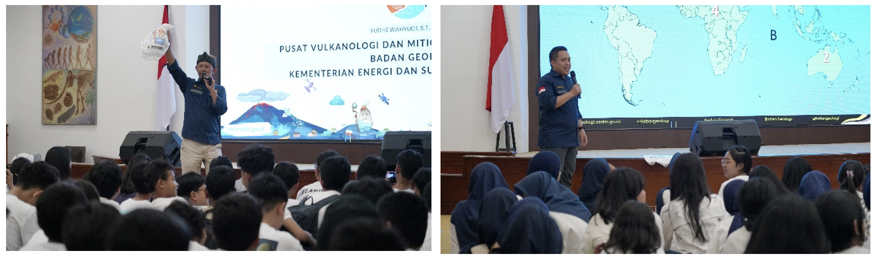 Pada kesempatan itu, selain mendapatkan materi di Auditorium, peserta juga diajak untuk menjelajahi informasi dan koleksi di ruang pameran Museum Geologi. Melalui layanan edukasi khusus ini membuktikan bahwa pembelajaran geologi khususnya kebencanaan dapat dikemas dengan cara yang interaktif, sehingga siswa tidak hanya memahami teori, tetapi juga lebih siap menghadapi potensi bencana di sekitarnya.